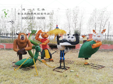 稻草工艺品功夫熊猫组合造型